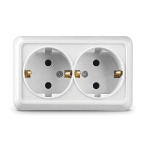 Розетка 2-м ОП Олимп 16А с заземл. белая UNIVersal О0128