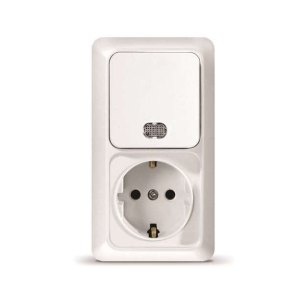 Блок ОП Олимп 1-кл. выкл. с подсветкой + роз. с заземл. верт. белый UNIVersal О0039