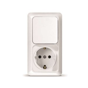 Блок ОП Олимп 1-кл. выкл.+ роз. с заземл. верт. белый UNIVersal О0038