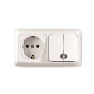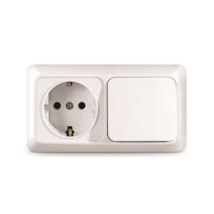 Блок ОП Олимп 1-кл. выкл.+ роз. с заземл. горизонт. белый UNIVersal О0032