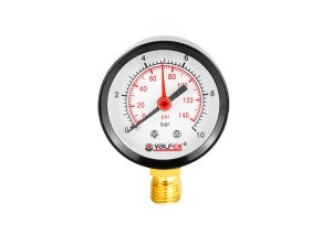 Манометр радиальный (ниж.подкл.) с контрольной стрелкой, 50 мм, 1/4", 10 бар VALFEX