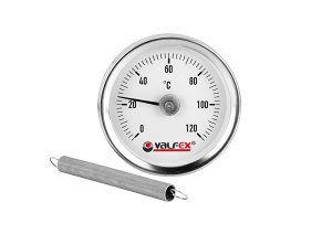 Биметаллический термометр накладной с пружиной, 63 мм, 120°С VALFEX