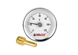 Биметаллический термометр с погружной гильзой, 63 мм, 1/2", 120°С VALFEX